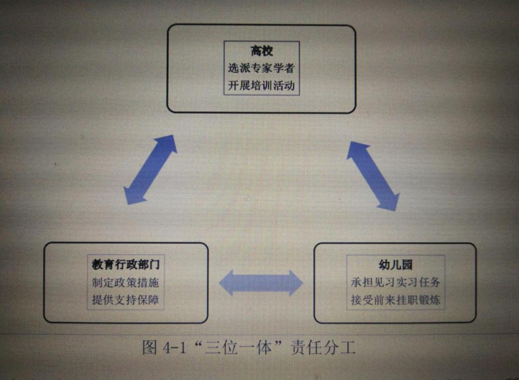 第二,与地方教育行政部门以及基地幼儿园合作建立教师培养、培训、研究和服务合作共同体