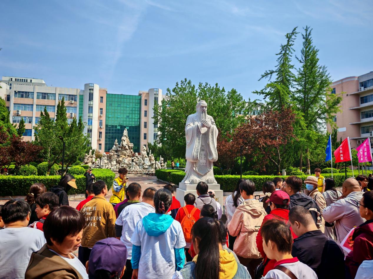 启动仪式结束后举行了“蜗牛慢步”校园文化体验活动,我院“爱心筑梦 益起同行”志愿服务团队全程提供支持与保障。师生志愿者引导参与者参观校园特色景观,于“至圣先师”石像和孔子讲学假山群前,介绍学校的发展历程及师范教育底色,科普孔子的生平事迹及主要成就,讲解太湖石的特点及美学内涵;于中心花园介绍桃李林、银杏道的植物文化象征;在曹火星音乐广场讲述《没有共产党就没有新中国》创作背景。在“携手闯关”融合游戏体验环节中,志愿者们通过一对一引导和耐心协助,帮助特殊群体顺利完成套圈、两人三足等趣味项目,在互动中深化情感联结。